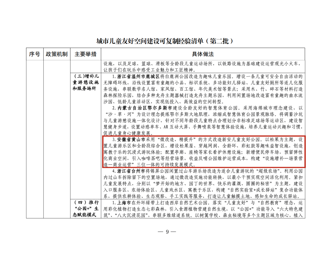 近日,住房城鄉建設部辦公廳、國家發展改革委辦公廳、國務院婦女兒童工作委員會辦公室印發《城市兒童友好空間建設可復制經驗清單(第二批)》,——由公司監理的黃山市中心城區城市更新基礎設施補短板期工程EPC(工程總承包)的重要組成部分黃山市“新安兒童友好公園”改造項目成功上榜,成為全省唯一入選案例。