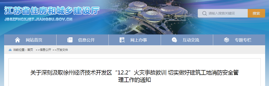 關于深刻汲取徐州經濟技術開發區“12.2”火災事故教訓 切實做好建筑工地消防安全管理工作的通知