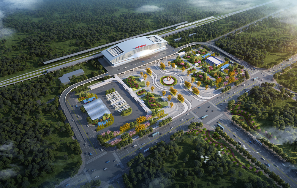 項(xiàng)目總用地面積約 112405 ㎡;總建筑面積約 43450 ㎡,其中地上建筑面積約 9650 ㎡;地下建筑面積約 33800 ㎡。地上建筑主要包括綜合交通樞紐、配套用房、綜合服務(wù)及變配電間、景觀連廊、汽車坡道、出站架空層等;地下建筑包括旅客服務(wù)及配套、出租車蓄車場、換乘區(qū)、停車場、充電樁及設(shè)備用房。