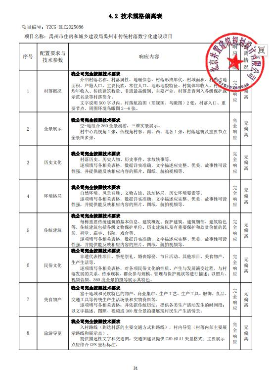 YZCG-DLC2025086 禹州市住房和城鄉(xiāng)建設(shè)局禹州市傳統(tǒng)村落數(shù)字化建設(shè)項(xiàng)目中標(biāo)結(jié)果公告